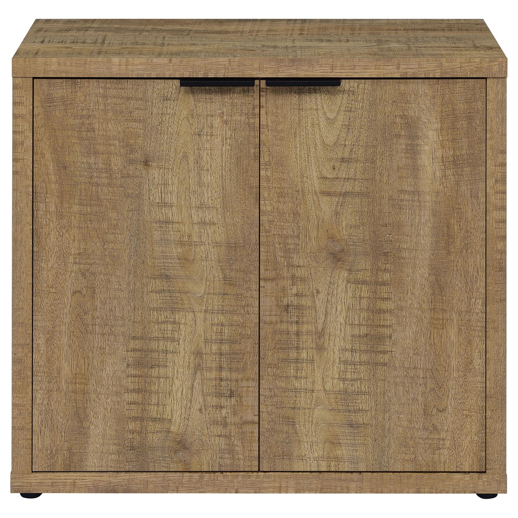 • Two-door accent cabinet featuring distinctive industrial-style hardware