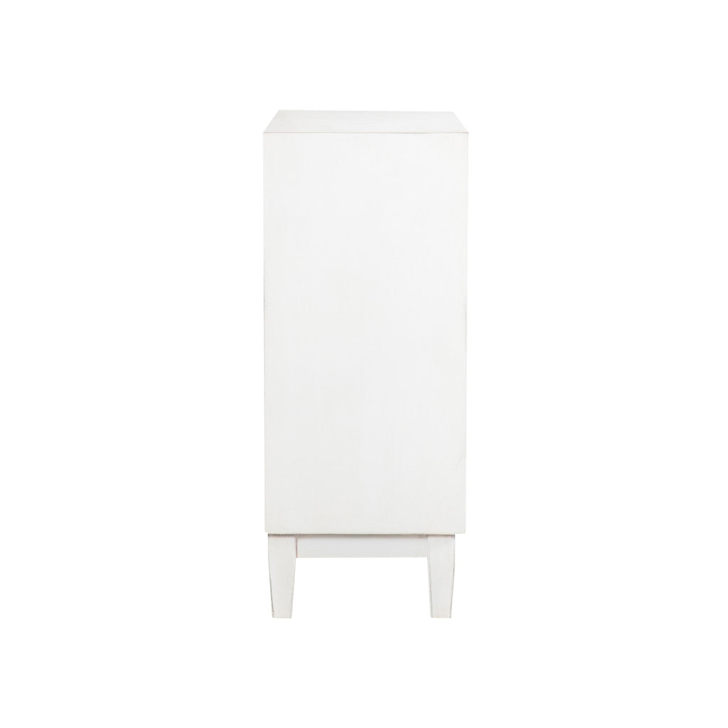 • Two door accent cabinet in white washed finish