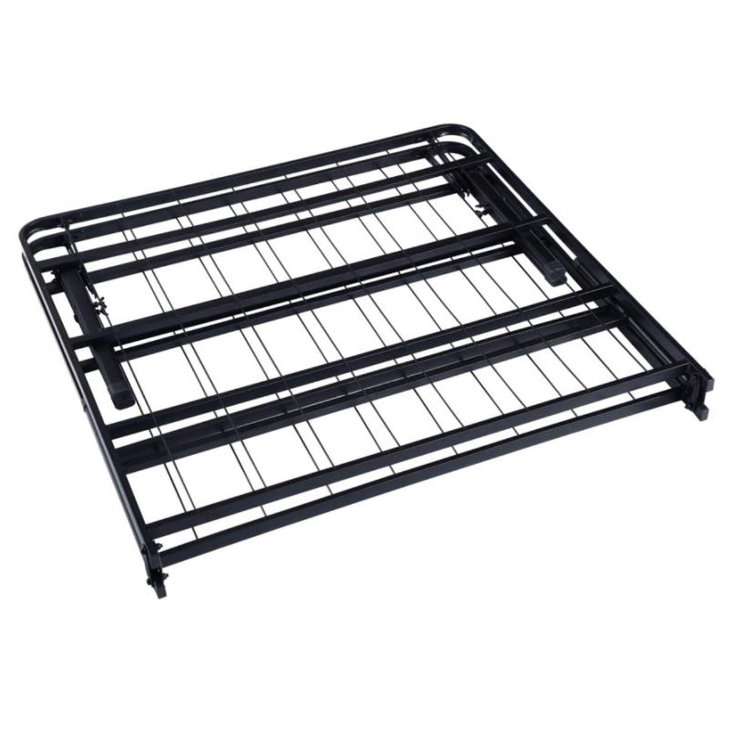 • The epitome of simplistic convenience, this reliable folding bed frame in a black powder coated finish is a must-have platform base in every home