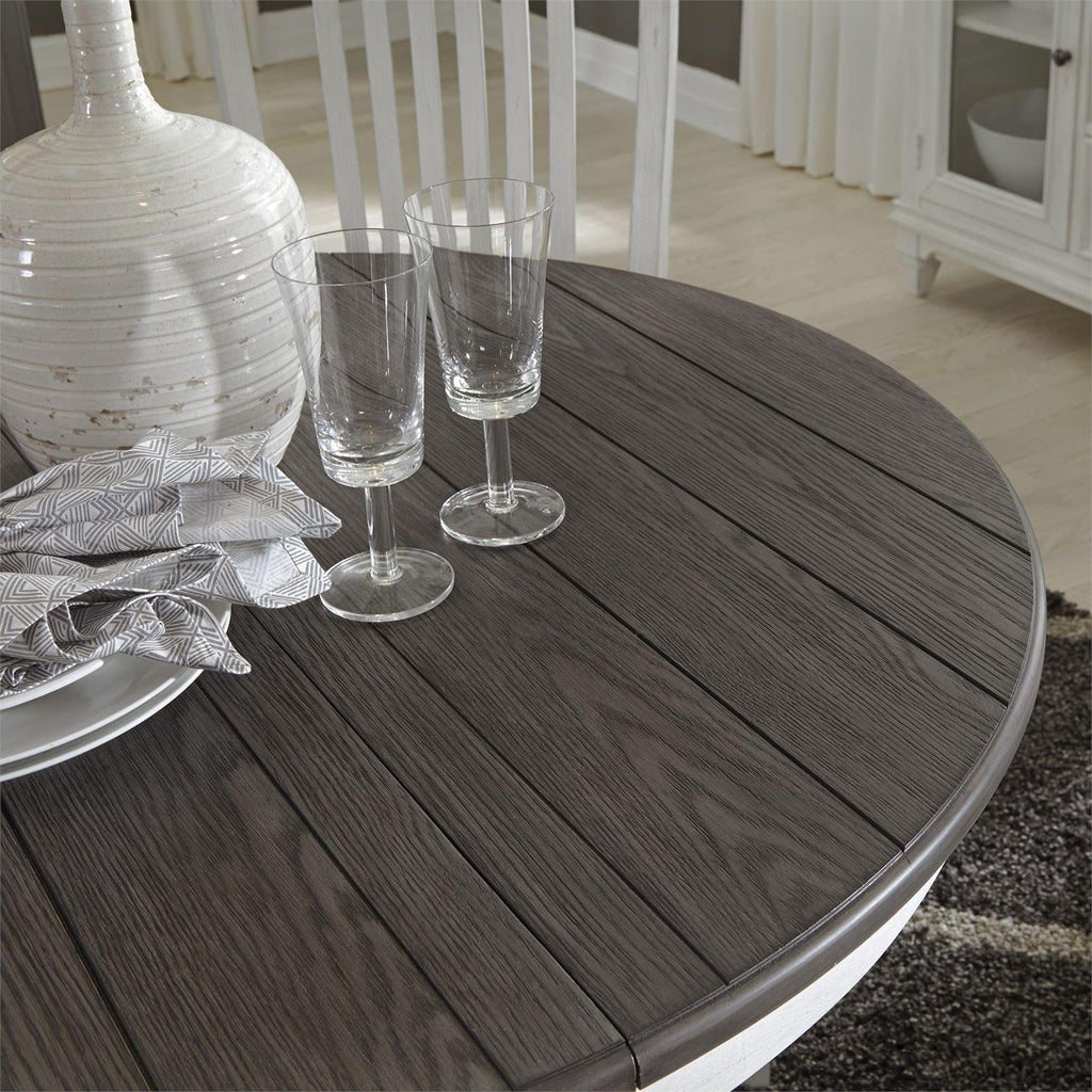 • Wire brushed white finish with charcoal finished top