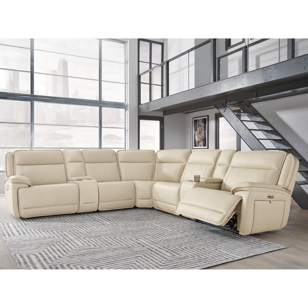 • Includes 7 pieces: left-arm facing power recliner, 2 consoles with storage, power armless recliner, armless chair, wedge and right-arm facing power recliner