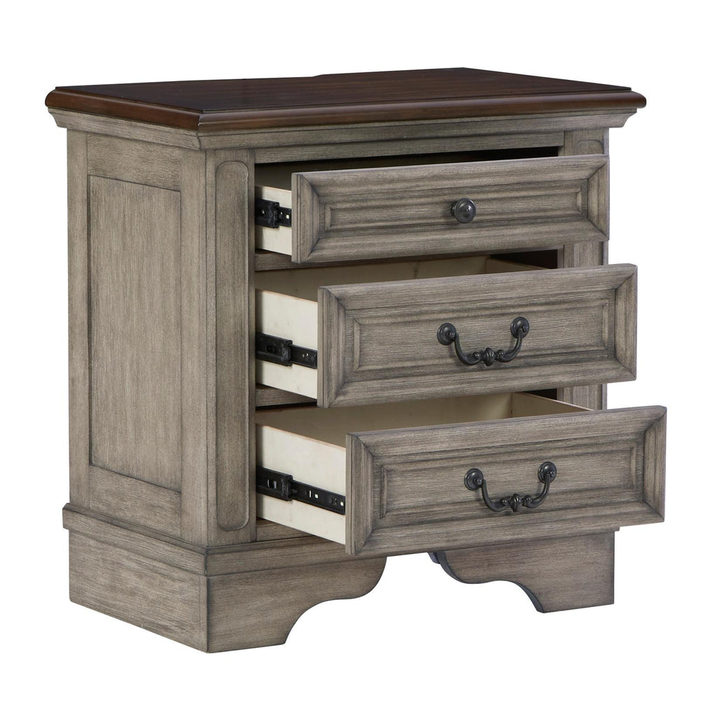 • Two-tone finish; antiqued gray body with a rich, deep walnut brown finish on top